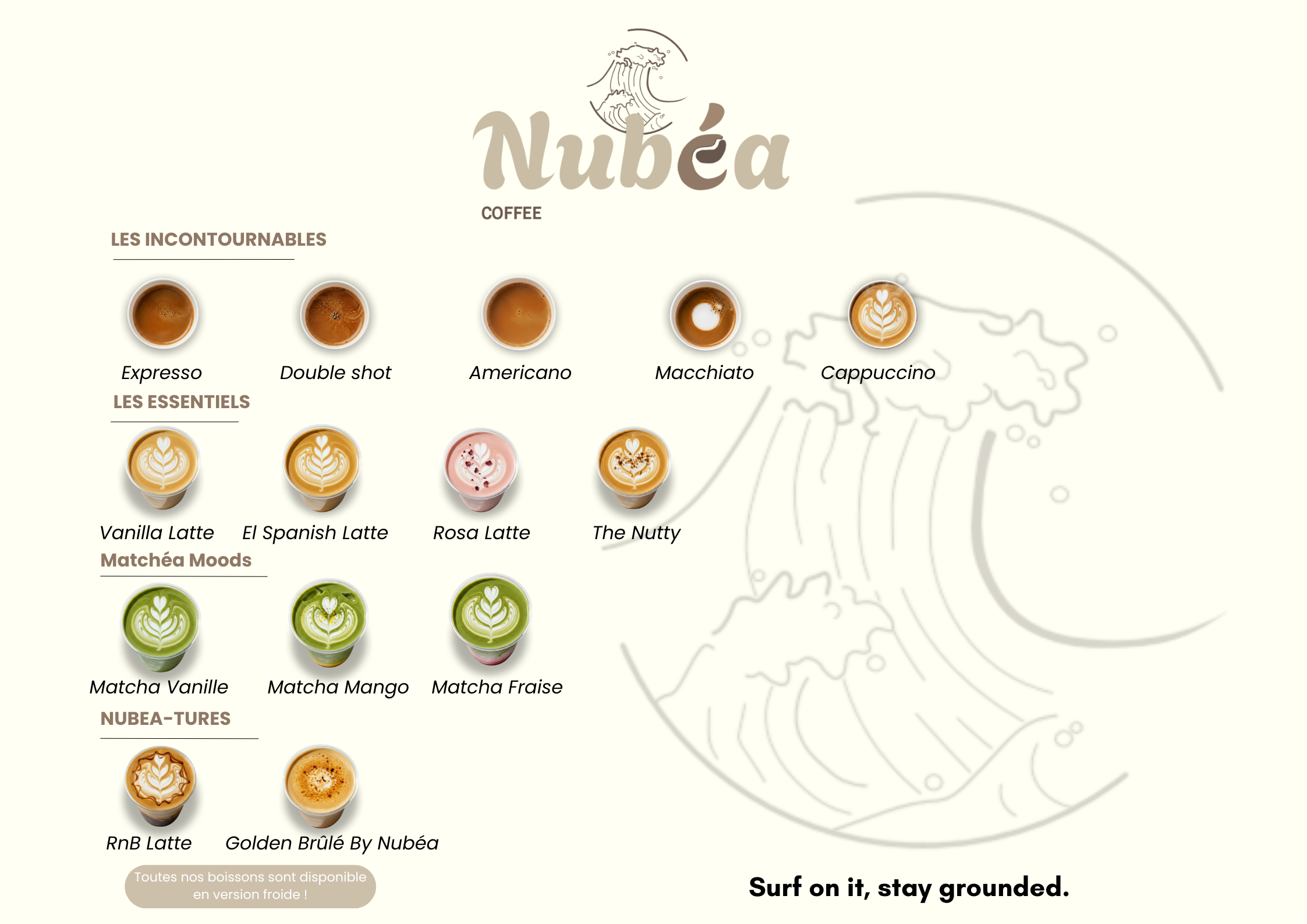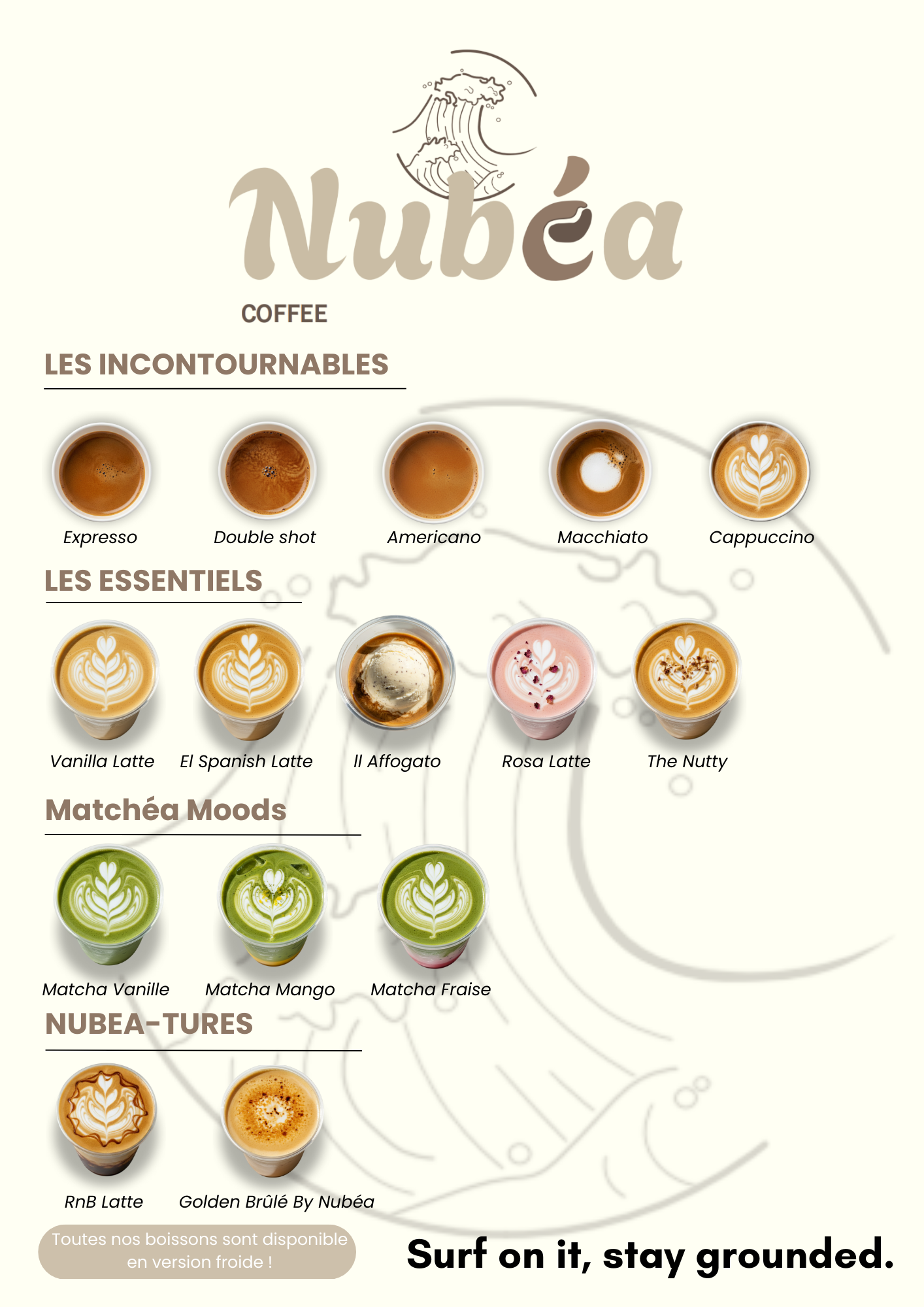 Chaque boisson signée Nubéa est une expérience, une palette de saveurs authentiques, servie sans compromis sur l'excellence.